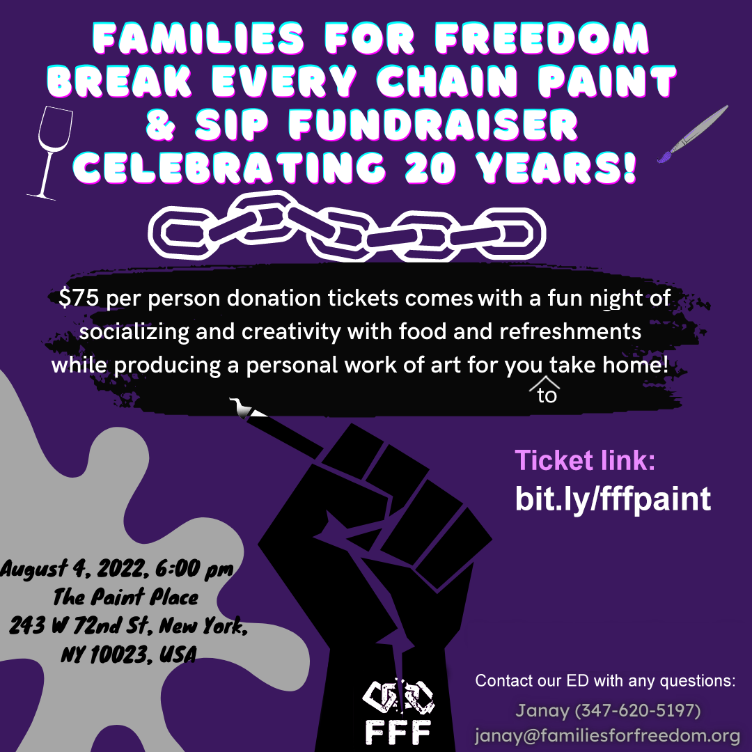 Join us for our FFF Paint and Sip fundraiser on 8/4/22 @6pm, which comes with a fun night of socializing and creativity, where you can produce a personal work of art to take home!